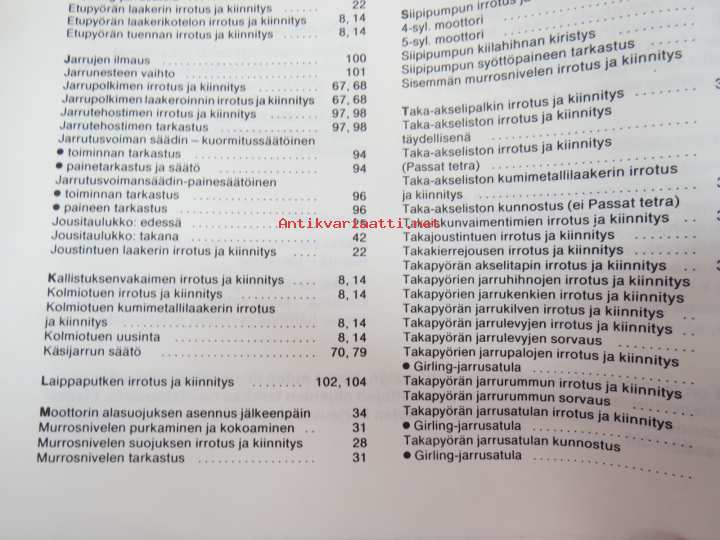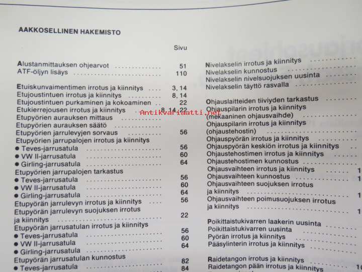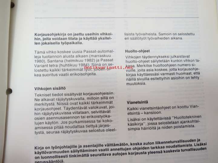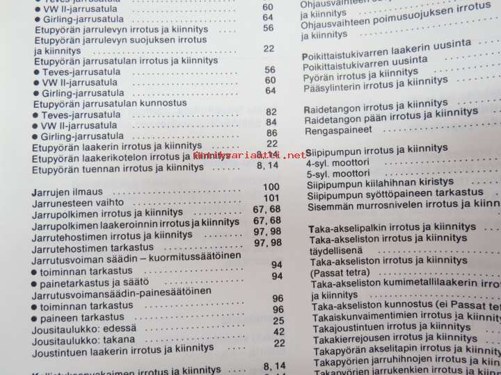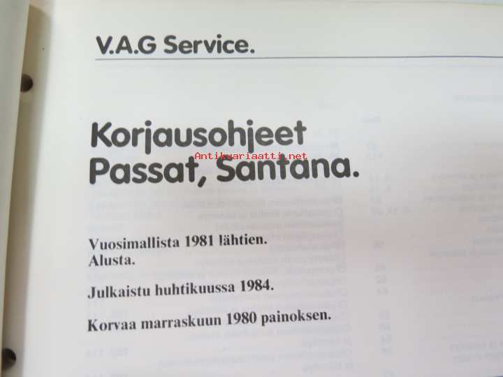 Volkswagen & Audi Service - Korjausohjeet Volkswagen Passat, Santana vuosimallista 1981 lähtien, Alusta -service booklet