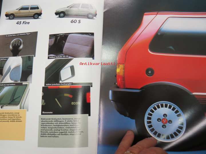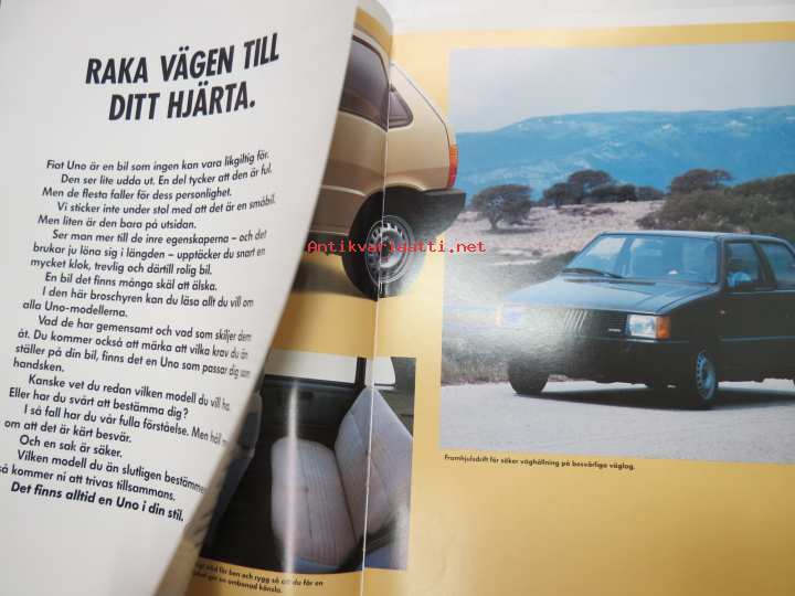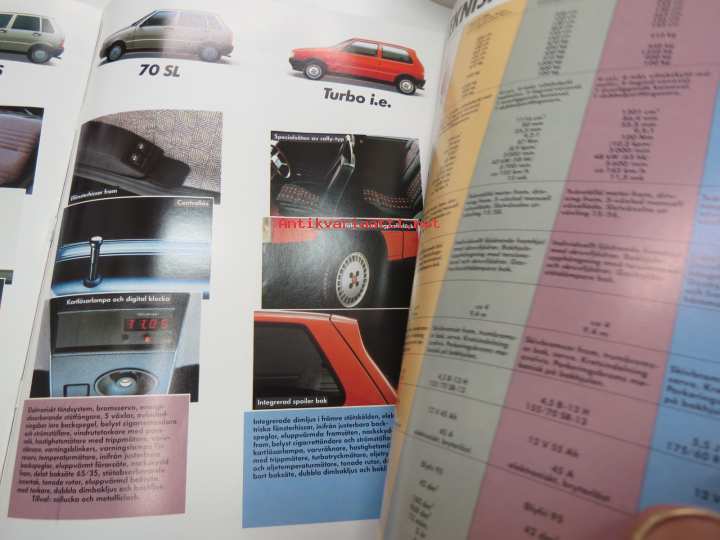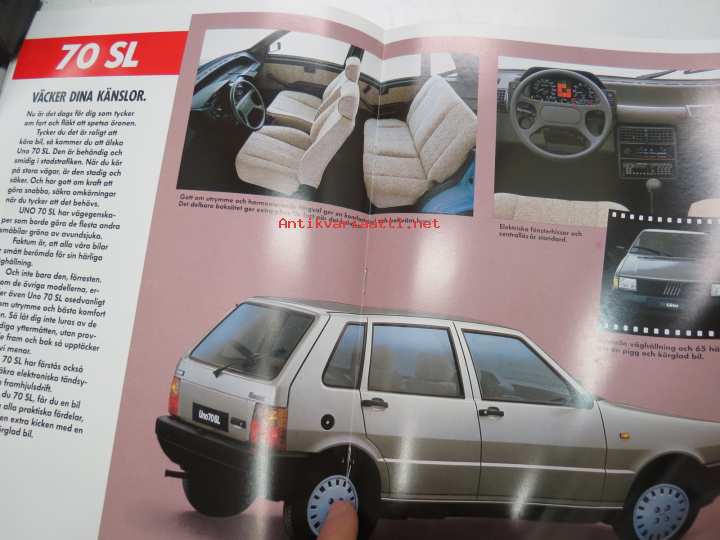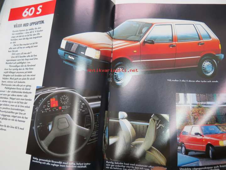 Fiat Uno 45 Fire, 60 S, 70 SL -myyntiesite ruotsiksi / brochure in swedish