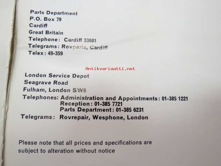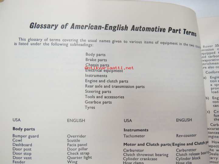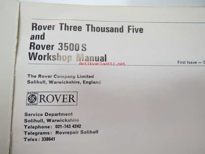 Rover Three Thousand Five (3500) and Rover 3500S Workshop Manual -korjaamokäsikirja englanniksi