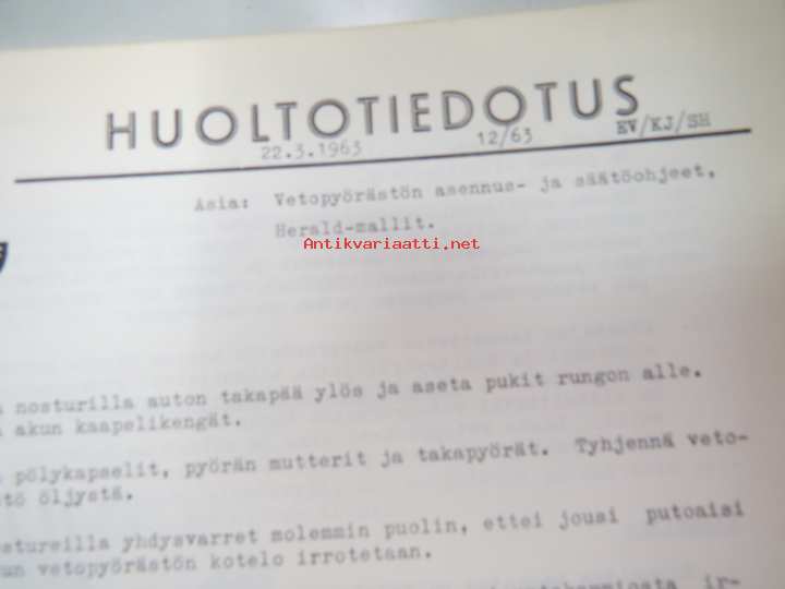 Oy Suomen Autoteollisuus Ab, 1962-6621 x 30 cm. Service news letters in finnish.