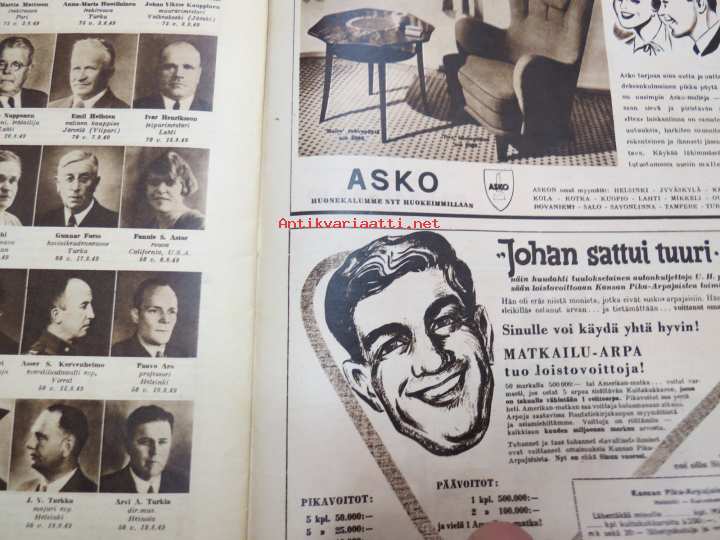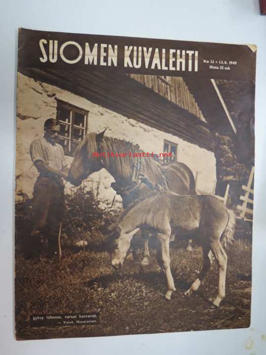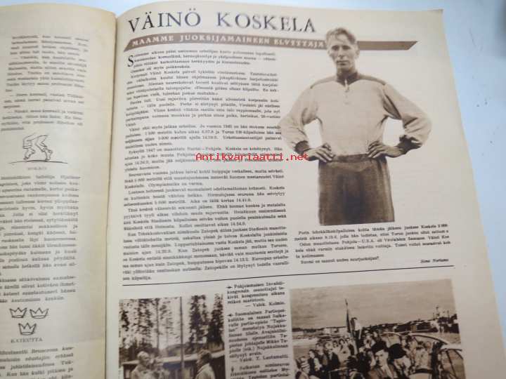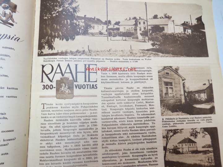 Suomen Kuvalehti 1949 nr 32, 13.8.1949, Raahe 300-vuotias, Maata ja vettä siirtolaiskalastajille, Juoksija Väinö Koskela, Raumalevy, Hellas Bueno kaakaojauhe, ym.