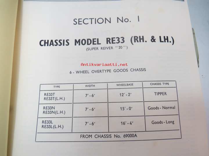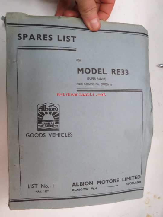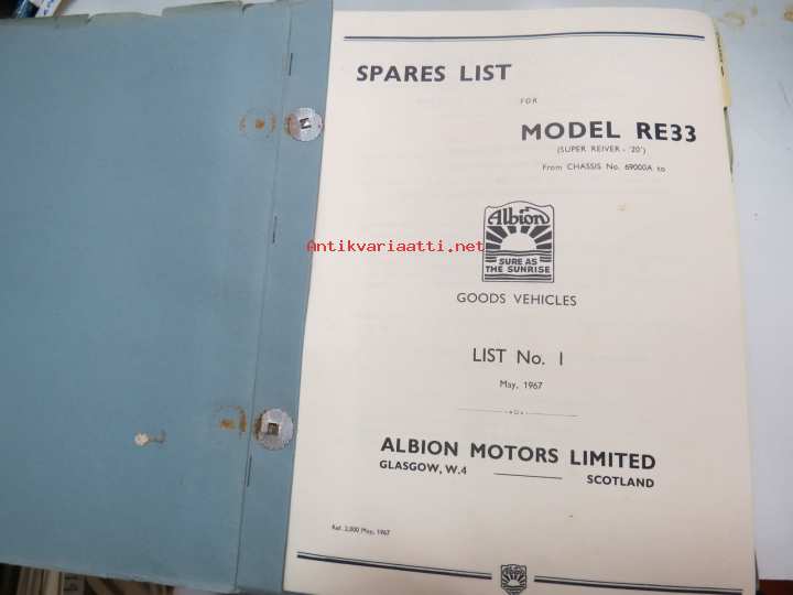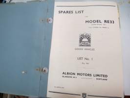 Albion Goods Vehicles - Spre Parts for Model RE33 (Super Reiver) from chassis nr. 69000A... List nr I, May 1967 -varaosaluettelo