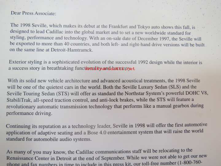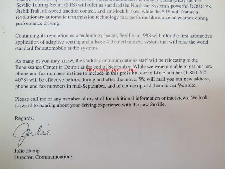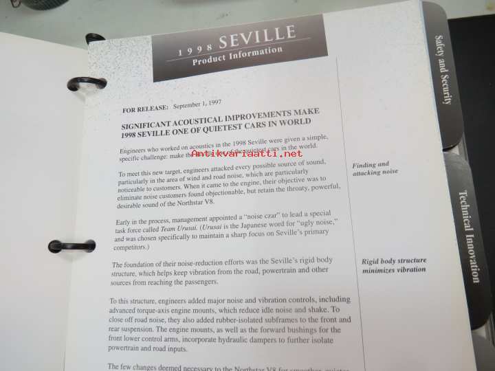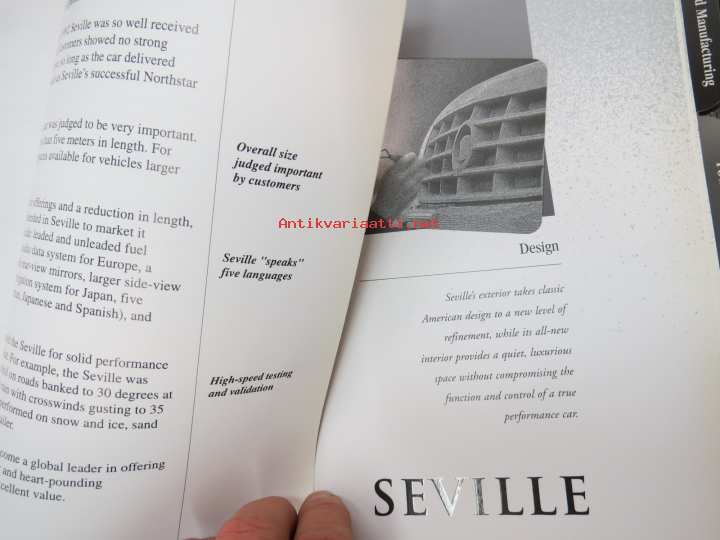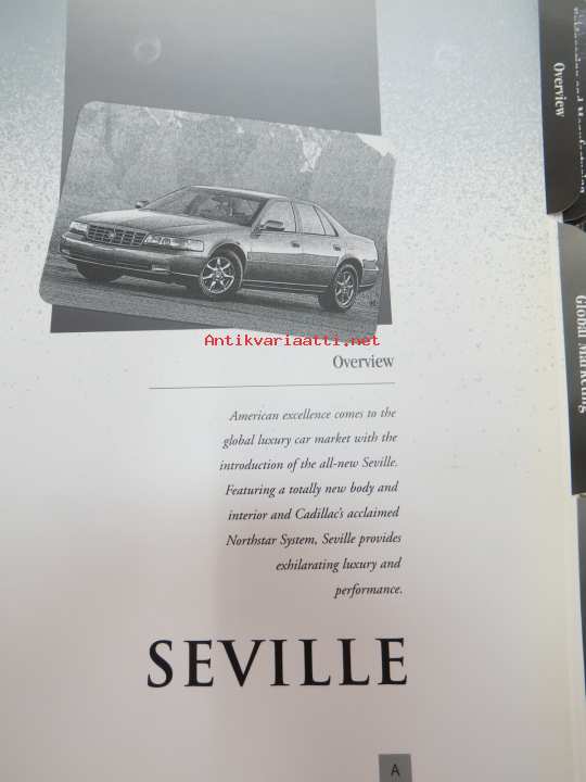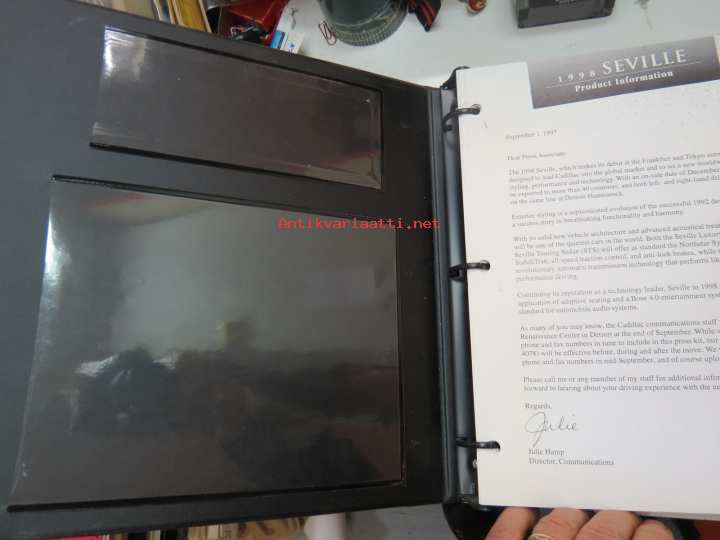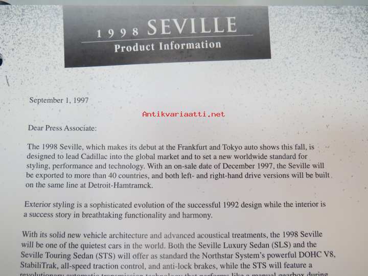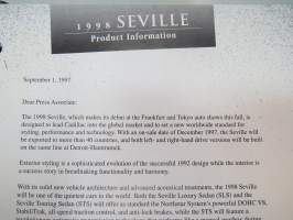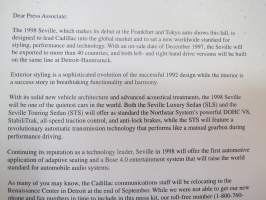 Cadillac Seville 1998 product information -mallivuoden esittelykansio pressikuvineen ym.