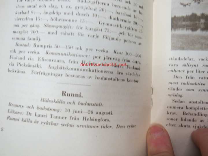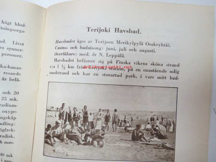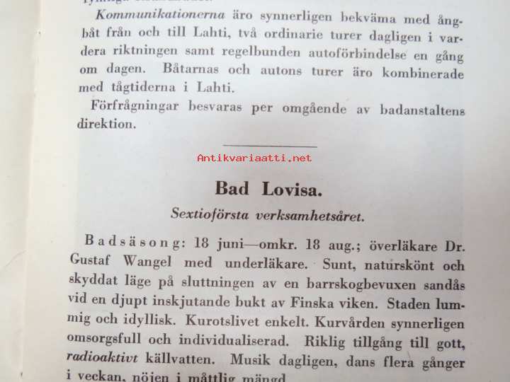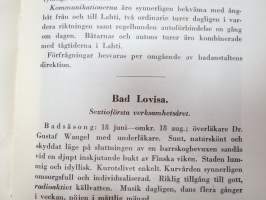 St. Olovsbad i Nyslott, Runni, Terijoki Havsbad (Terijoen Merikylpylä Oy), Badanstalten i Willmanstrand, Ulrikasborgs Bad- och Kuranstalt i Helsingfors. 12 x 19 cm.