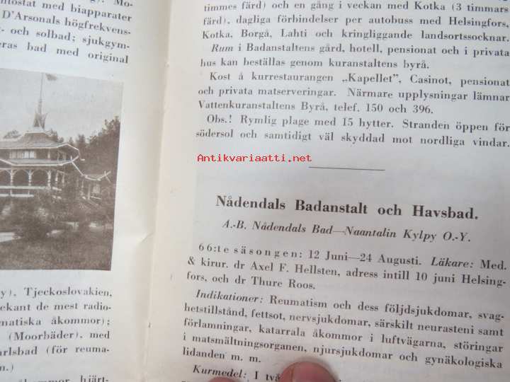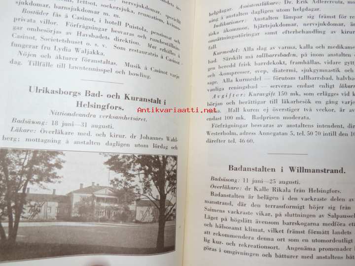 Bad- och Kuranstalter i Finland 1928; Heinola stads Badanstalt, Bad-Lovisa, Nådendals Badanstalt och Havsbad (A.B. Nådendals Bad - Naantalin Kylpy O.Y.)...