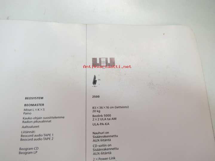 Bang & Olofsen Beosystem 2500 -myyntiesite / brochure
