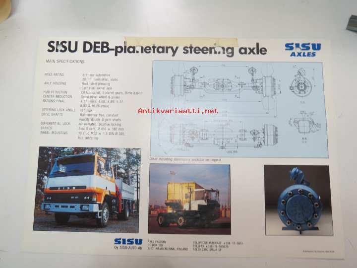 Sisu DEB-planetary steering axle -myyntiesite / brochure