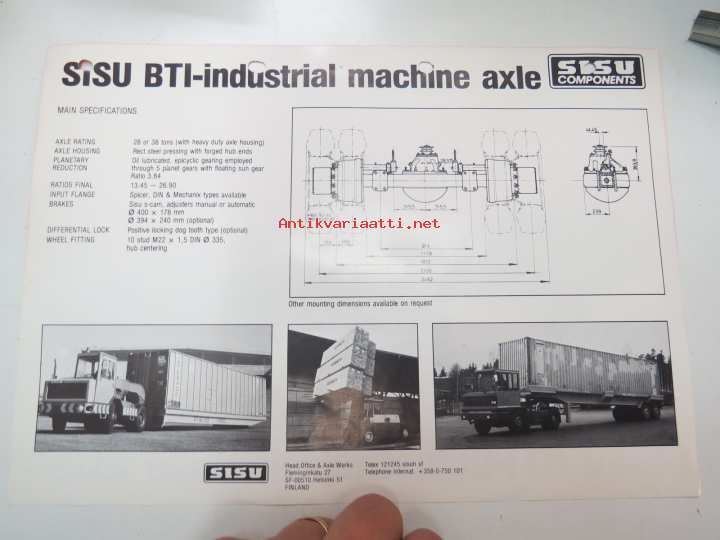 Sisu BTI-industrial machine axle -myyntiesite / brochure