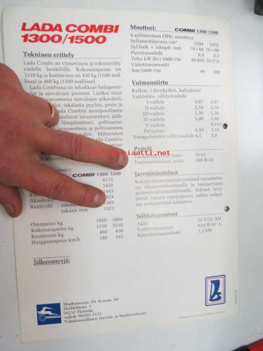 Lada Combi 1300 / 1500 -myyntiesite / brochure