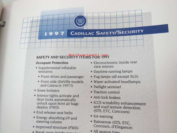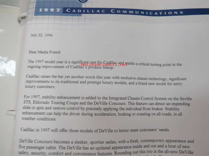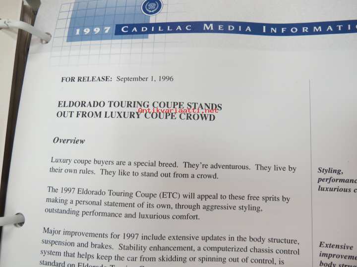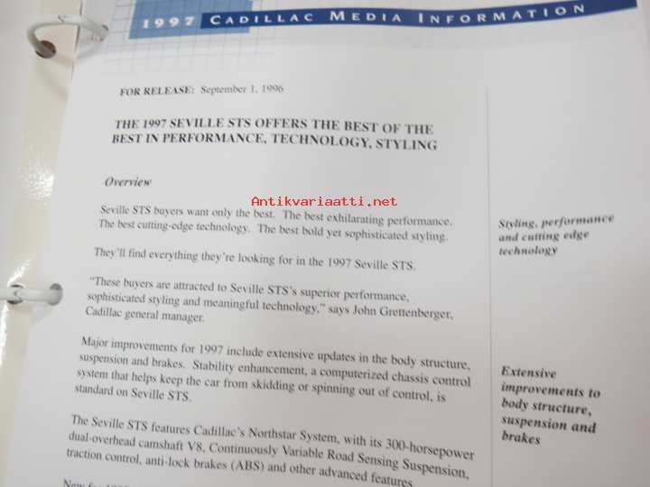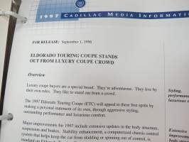 Cadillac 1997 Media Information -kansio, sisältää mm. noin 35 pressikuvaa