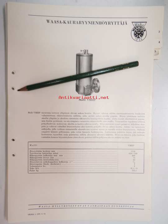 Wärtsilä Peko Waasa-kauraryynienhöyryttäjä malli VMPH -myyntiesite / brochure