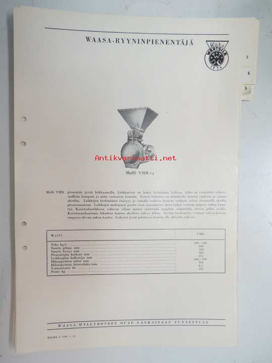 Wärtsilä Peko Waasa-ryyninpienentäjä malli VMR/15 -myyntiesite / brochure