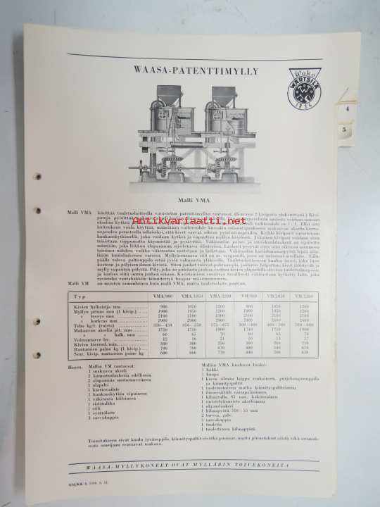 Wärtsilä Peko Waasa-patenttimylly malli VMA -myyntiesite / brochure