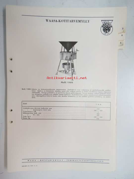 Wärtsilä Peko Waasa-kotitarvemylly malli VMM -myyntiesite / brochure