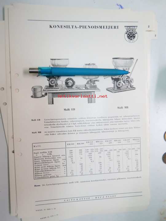 Wärtsilä Konesilta-pienoismeijeri malli EB, MB -myyntiesite / brochure