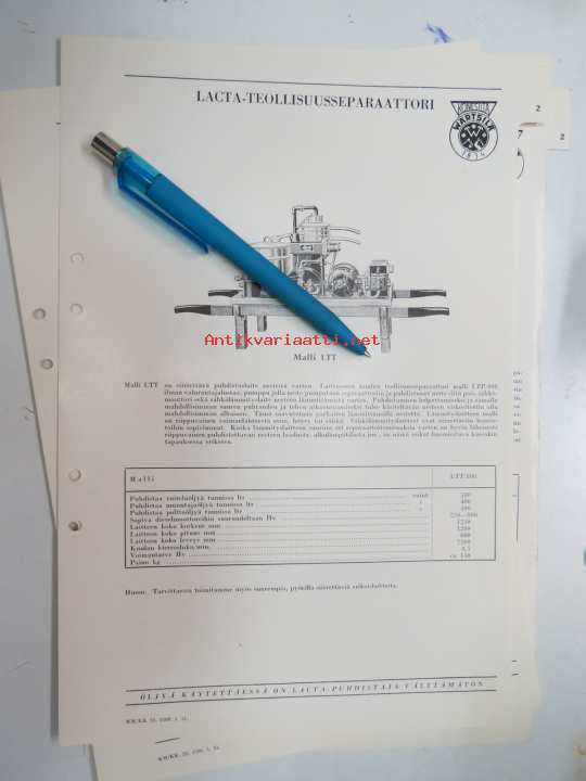 Wärtsilä Konesilta Lacta-teollisuusseparaattori malli LTT -myyntiesite / brochure