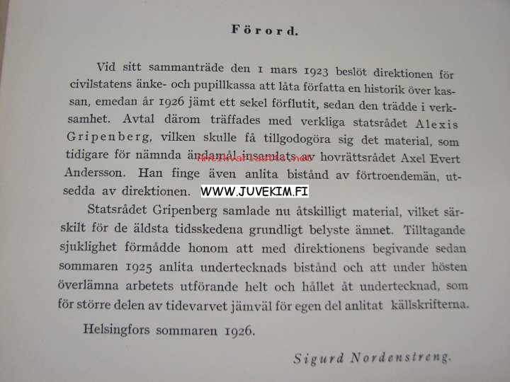 Suomen Siviilivirkakunnan leski- ja orpokassa , 192620 x 27 cm kirja.