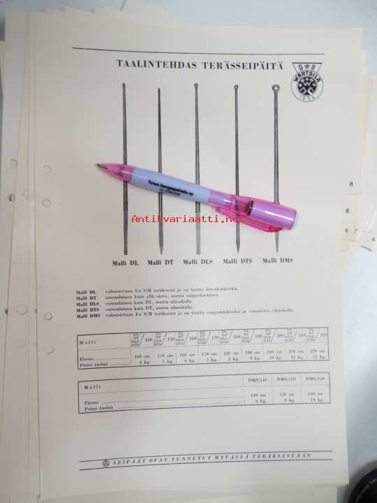 Wärtsilä DB Taalintehdas terässeipäitä (rautakankia) malli DL, DT, DLS, DTS, DMS -myyntiesite / brochure