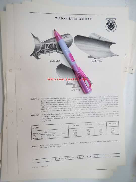 Wärtsilä Wako-lumiaurat malli VLA, VLP -myyntiesite / brochure