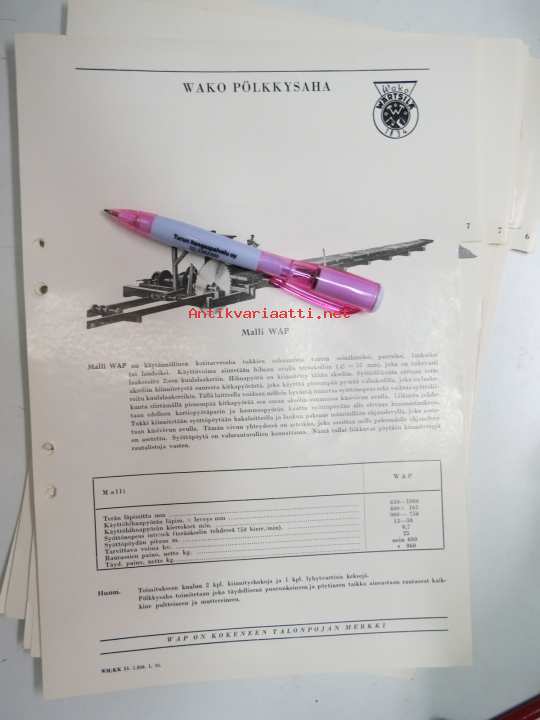 Wärtsilä Wako pölkkysaha malli WAP -myyntiesite / brochure