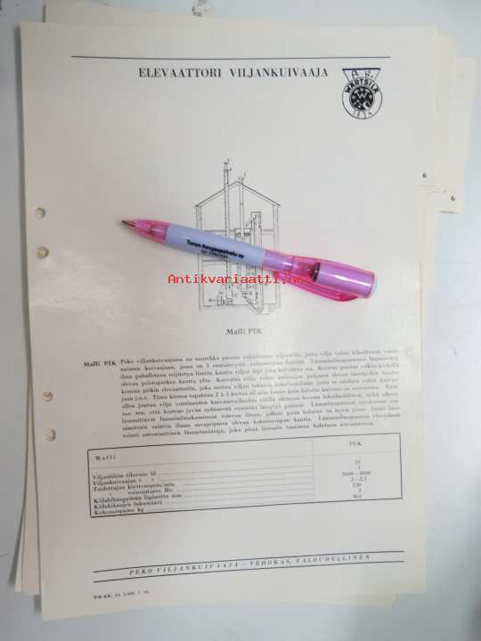 Wärtsilä Peko elevaattori viljankuivaaja malli PEK -myyntiesite / brochure
