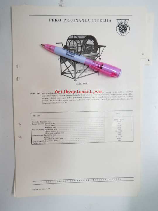Wärtsilä Peko perunanlajittelija malli PPL -myyntiesite / brochure