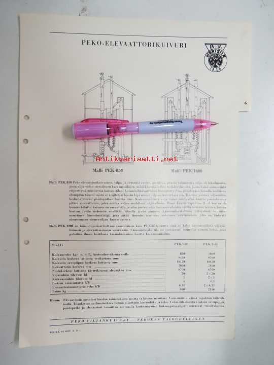 Wärtsilä Peko elevaattorikuivuri malli PEK/850, PEK/1600 -myyntiesite / brochure