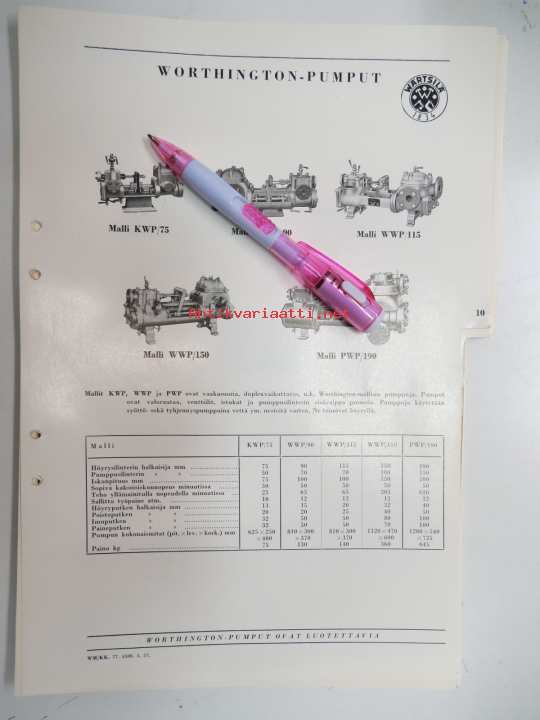 Wärtsilä Worthington-pumput malli KWP/75, WWP/90, WWP/115, WWP/150, PWP/190 -myyntiesite / brochure