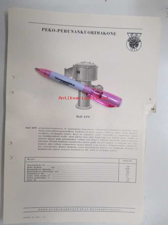 Wärtsilä Peko perunankuorimakone malli KPD -myyntiesite / brochure
