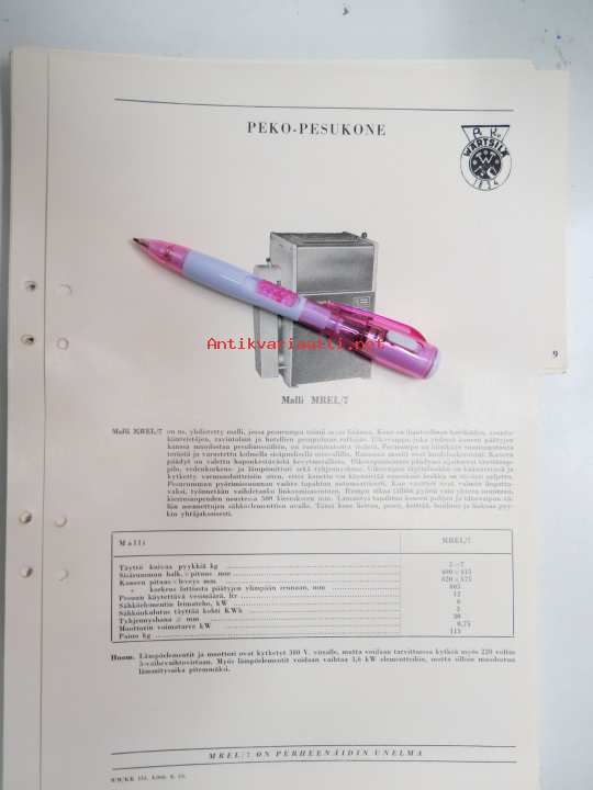 Wärtsilä Peko pesukone malli MREL/7 -myyntiesite / brochure