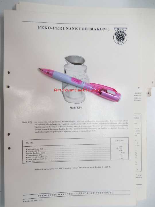 Wärtsilä Peko perunankuorimakone malli KPR -myyntiesite / brochure