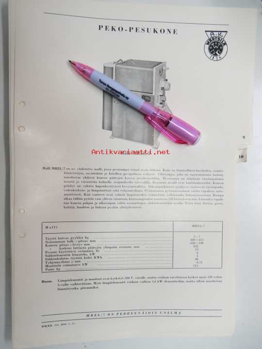 Wärtsilä Peko pesukone malli MREL/7 -myyntiesite / brochure