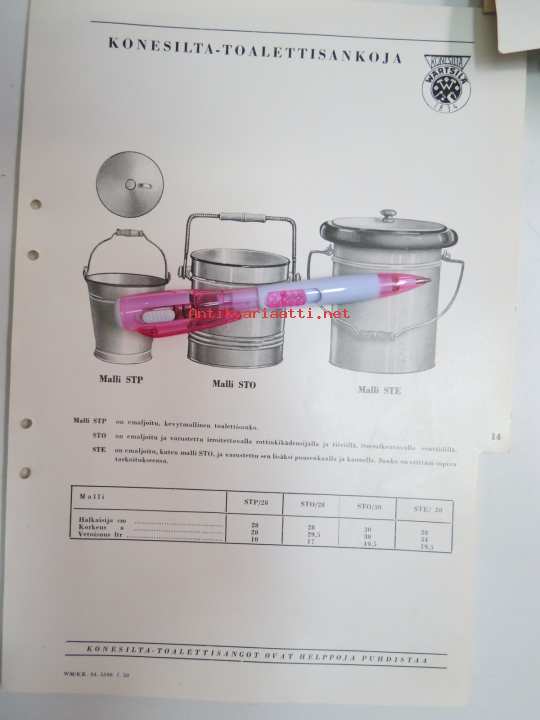 Wärtsilä Konesilta-toalettisankoja (emali) malli STP, STO, STE -myyntiesite / brochure