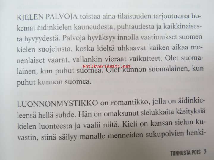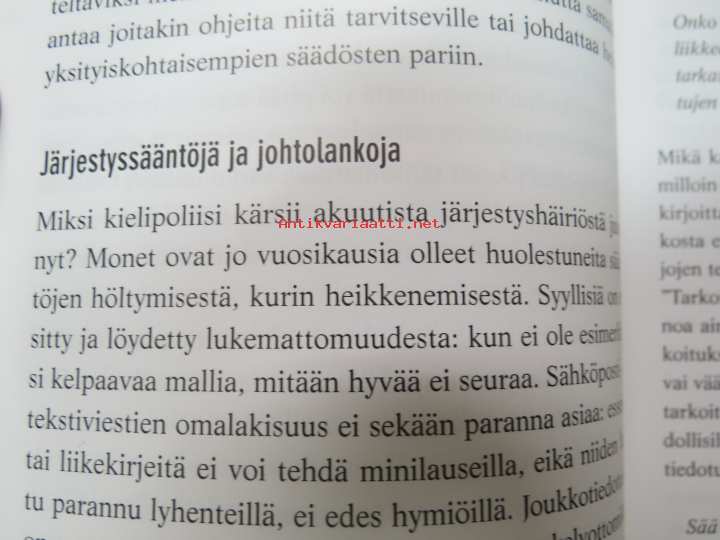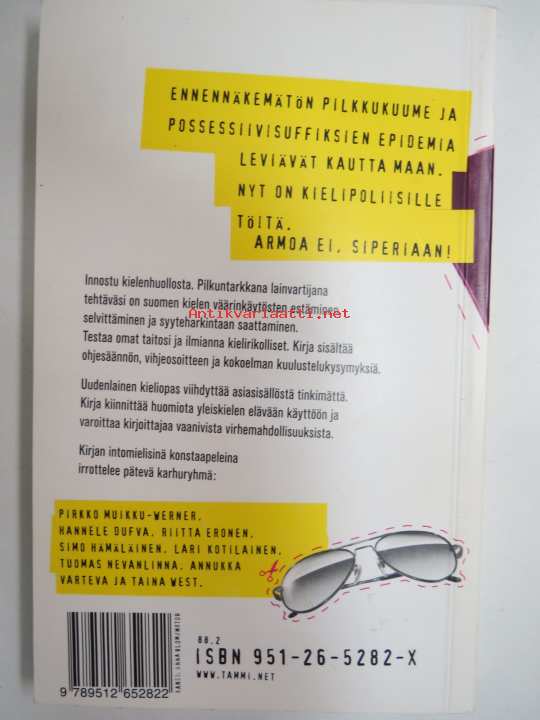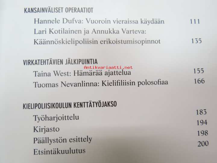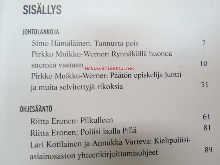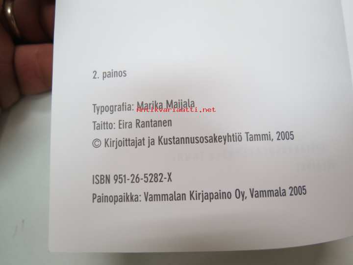 | Saatavilla | 1 kpl | | Julkaisuvuosi | 2005 | | Sivuja | 199 | | Painos | 2. | | Kunto | K3 | | Sidonta/painoasu | Nidottu (pehmeäk.) | | ISBN | 951-26-5282-X | | Kielet | Suomi |