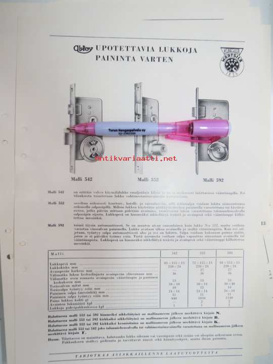 Wärtsilä Konesilta Abloy upotettavia lukkoja paininta varten -myyntiesite / brochure