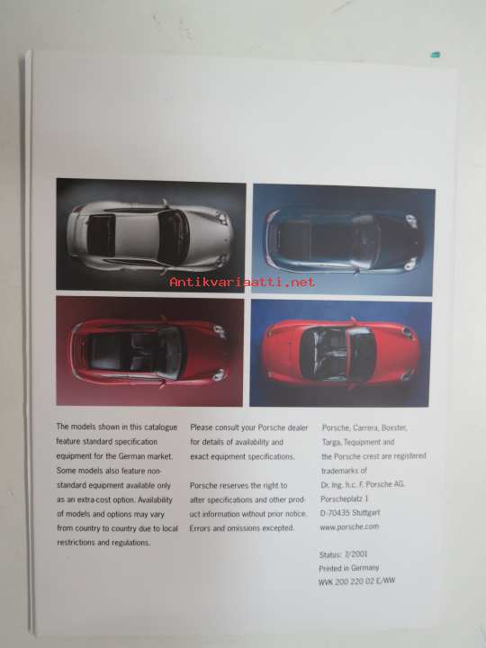 Porsche Model Range 2002 911, Boxster -myyntiesite / sales brochure