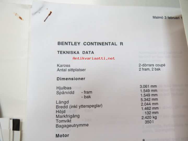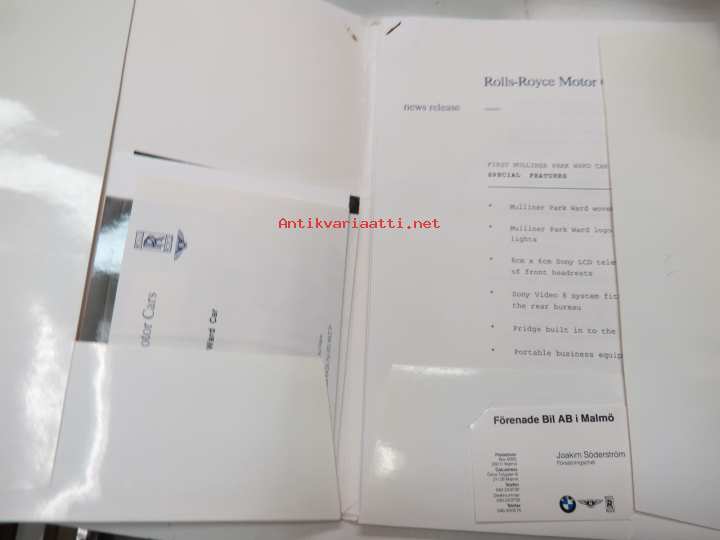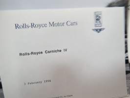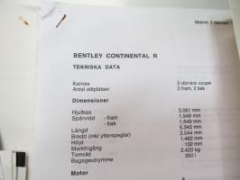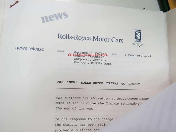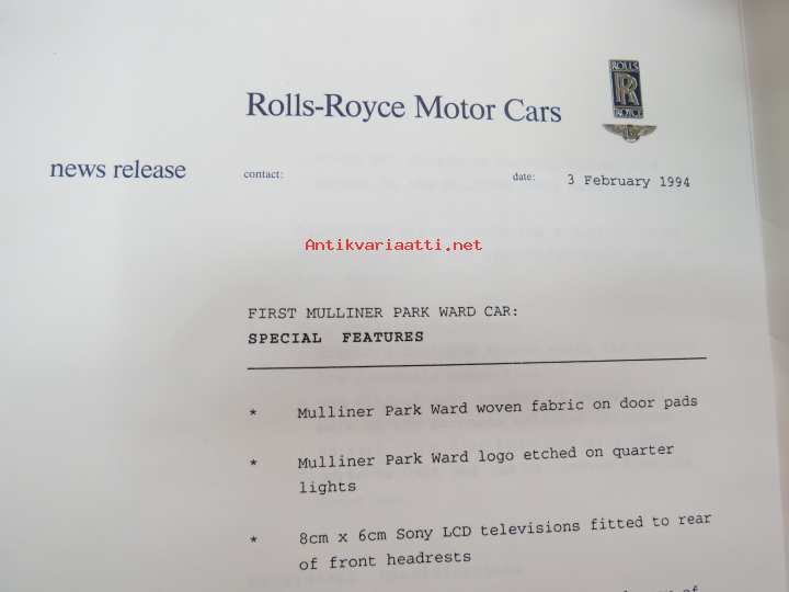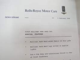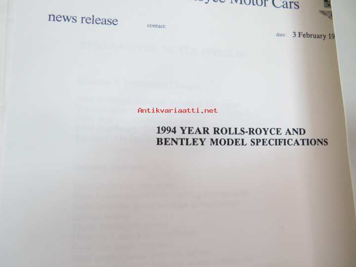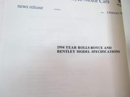 Rolls-Royce and Bentley 1994 year model specifications news release + 6 pcs press photographs -lanseerausesite + 6 kpl pressikuvia
