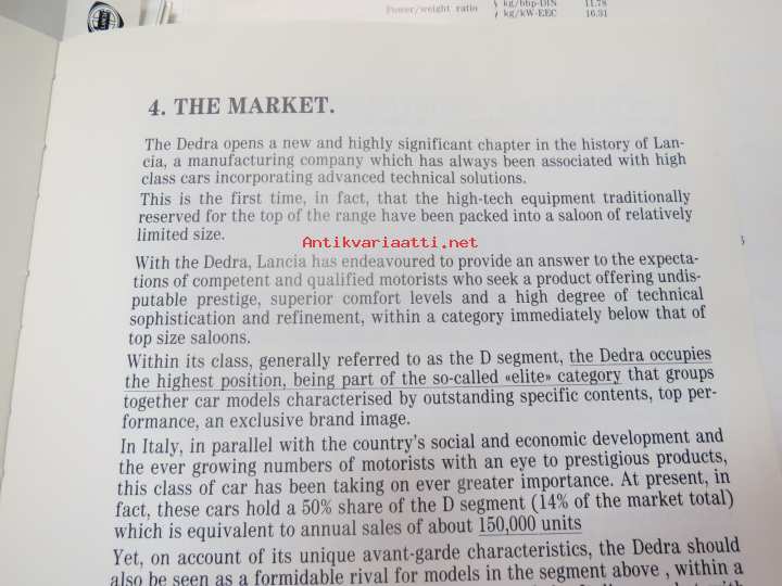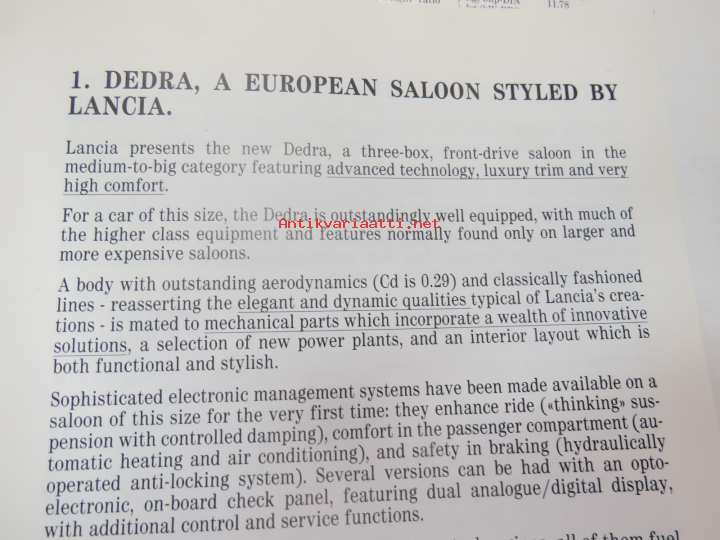 Lancia Dedra -mallistoesittelykansio / lehdistötiedote kansio, sisältää myös suomenkielisen esitteen/ press release binder