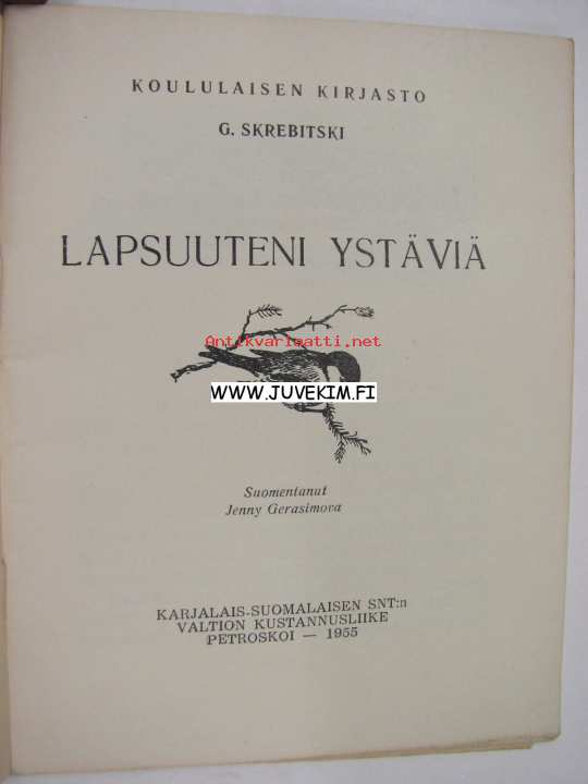 Skrebitski G., Karjalais-Suomalaisen SNT:n Valtion Kustannusliike, 195513 x 17 cm kirja.