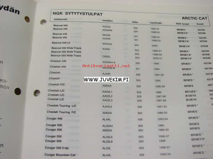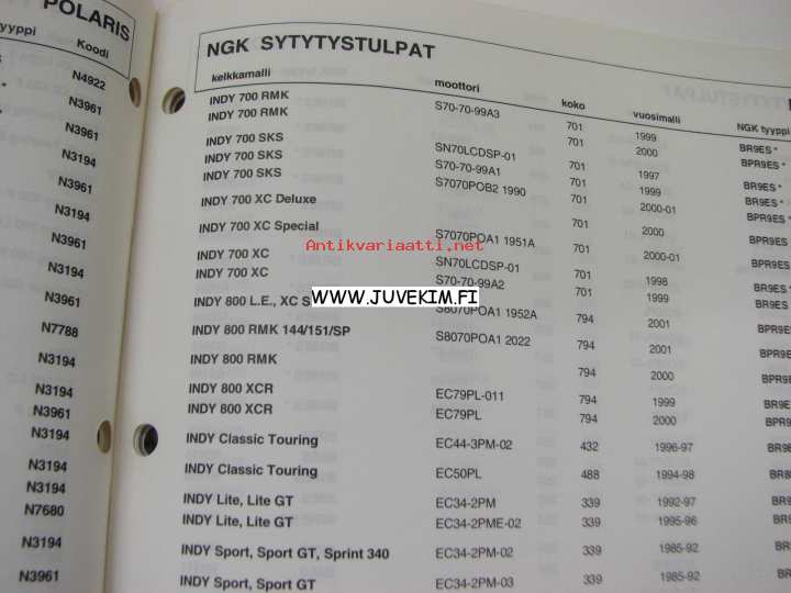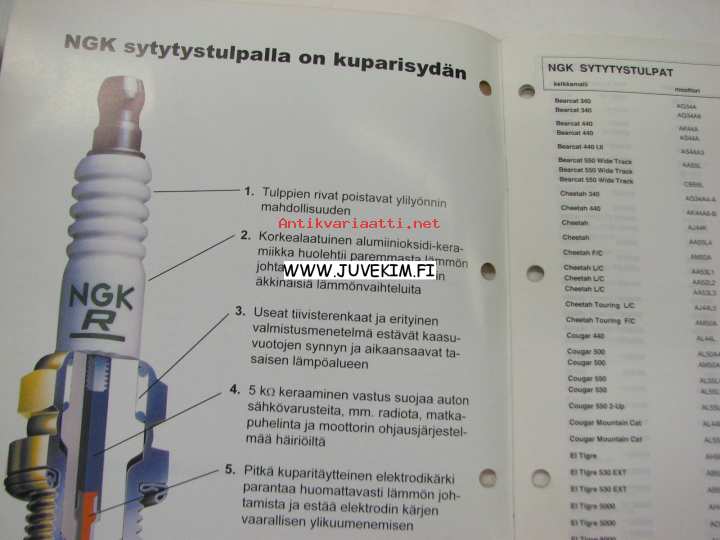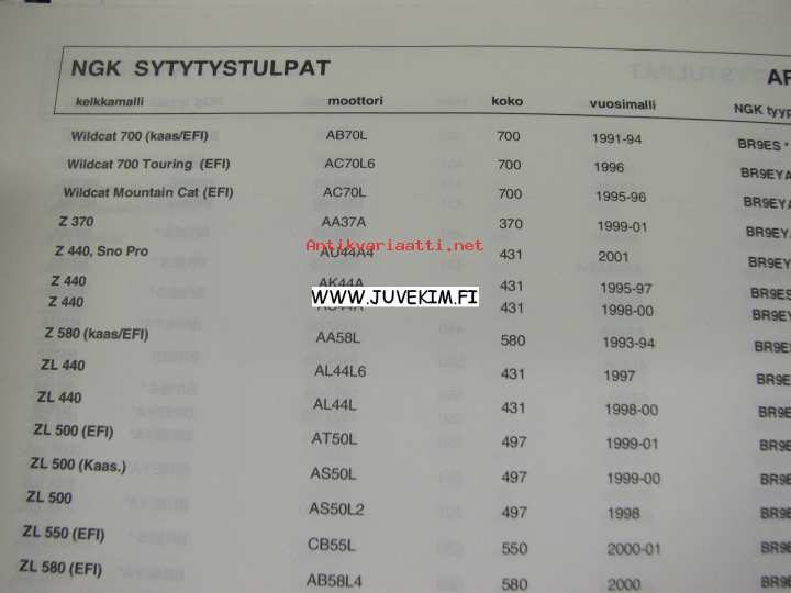 NGK moottorikelkka sytytystulpat 2001-2002