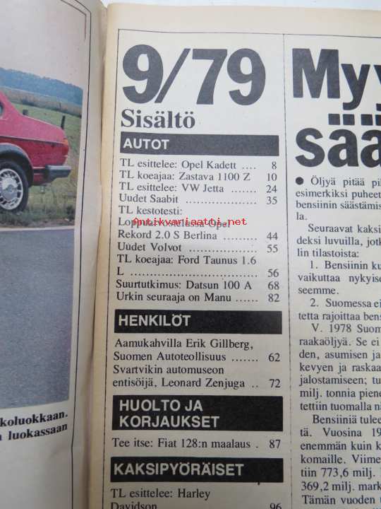 Tuulilasi 1979 nr 9, Datsun 100A sata omistajaa kertoo, Halvat autoradiot, Etuvetoinen Opel Kadett, Zastava 1100 Z, Volkswagen Jetta, Turbo on nykyaikaa, Ysikuutonen