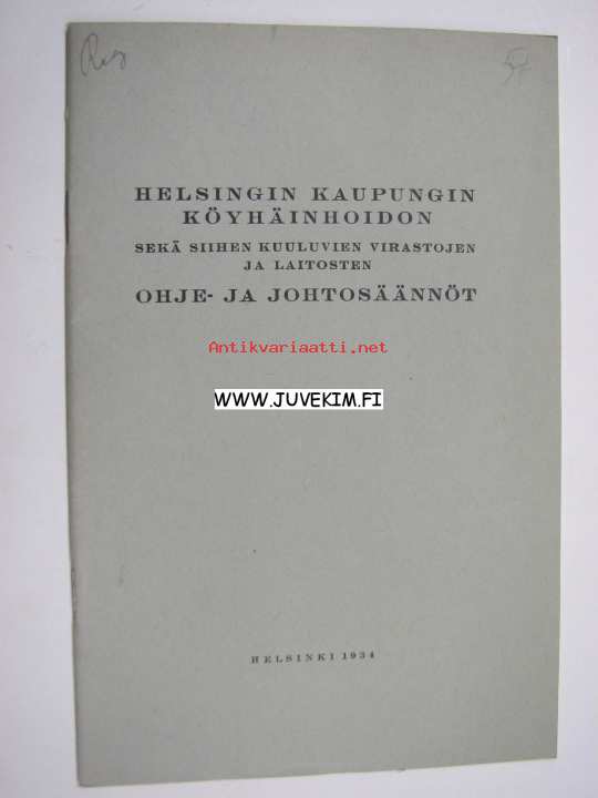 Helsingin kaupunki, 193415 x 21 cm ohjekirjanen.