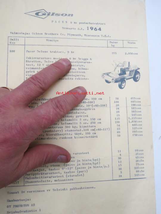 Gilson Pacer puutarhatraktori -myyntiesite / brochure