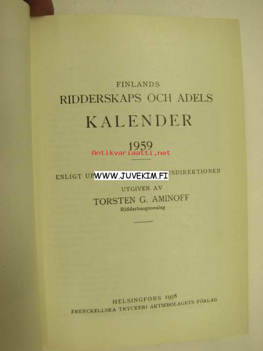 Finlands ridderskaps och adels kalender 1959 -aateliskalenteri
