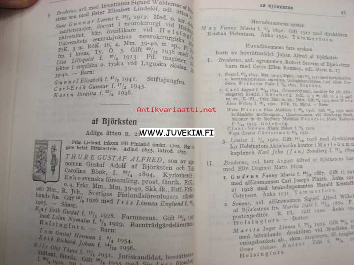 | Saatavilla | 1 kpl | | Julkaisuvuosi | 1958 | | Sivuja | 625 | | Painos | 1. | | Kunto | K3 | | Sidonta/painoasu | Sidottu (kovak.) | | Kielet | Ruotsi |