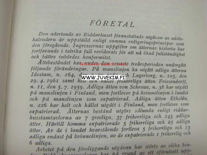 Finlands ridderskaps och adels kalender 1962 -aateliskalenteri