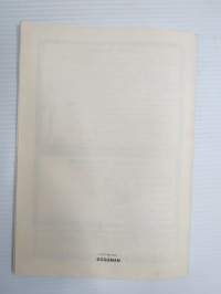 | Saatavilla | 1 kpl | | Sivuja | 24 | | Kunto | K3 | | Sidonta/painoasu | Nidottu (pehmeäk.) | | Kielet | Englanti, Suomi, Ruotsi, Tanska |