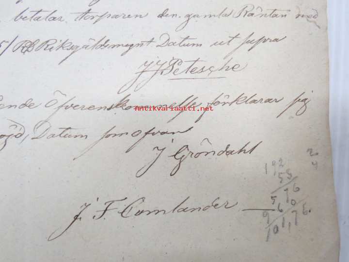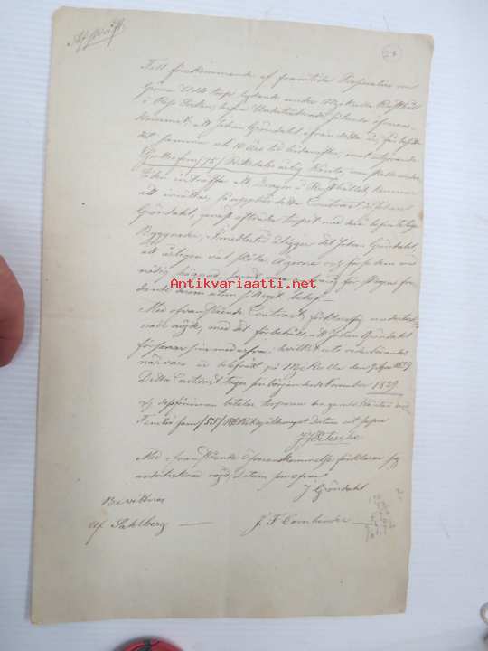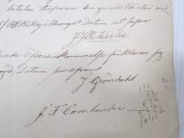22 x 34 cm, alkuperäiset allekirjoitukset, päivätty Helsinki 23.11.1839, C & I. Honig vesileimapaperi (mehiläispesä leimana).