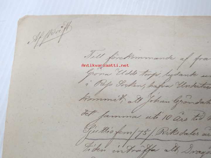 "Pendyler med Hans Majestät Nikolai I bild till häst" -asiakirja,sopimus, tilattu pariisista 12 pendyyliä (Lars Jacobsen) Pariisi, A.W. Astenius & G.O. Wasenius
