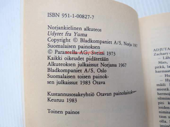 | Saatavilla | 1 kpl | | Julkaisuvuosi | 1983 | | Sivuja | 121 | | Painos | 2. | | Kunto | K2 | | Sidonta/painoasu | Nidottu (pehmeäk.) | | Kielet | Suomi |